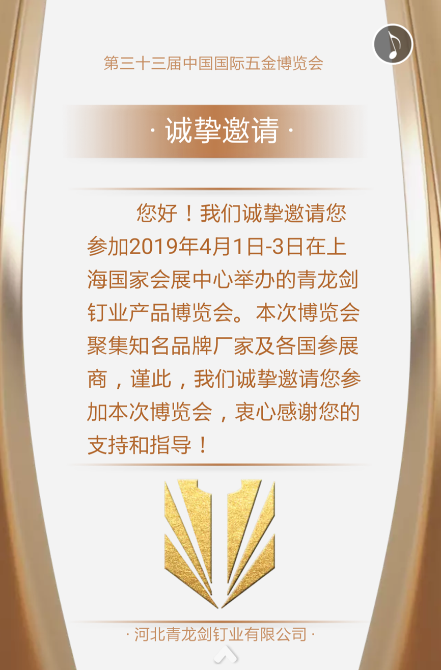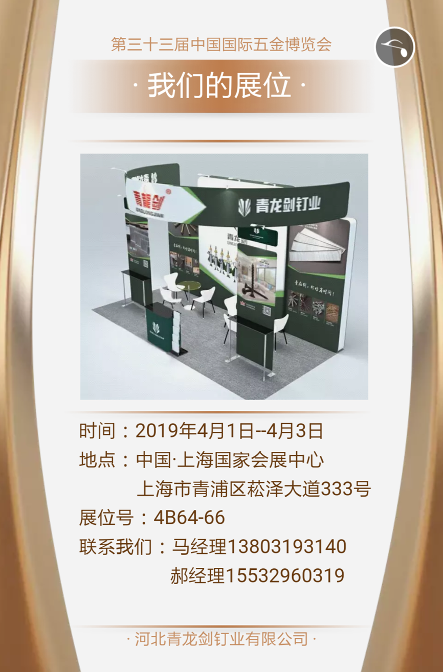 青龍劍釘業--第三十三屆中國國際五金博覽會邀請
