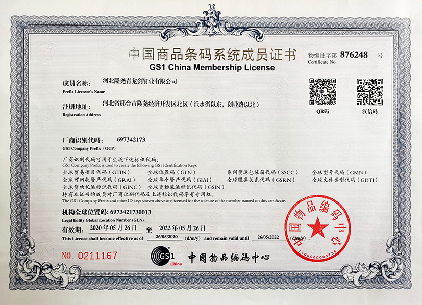 青龍劍釘業(yè)有限公司已成為中國(guó)商品條碼系統(tǒng)成員,從2021年起青龍劍全系產(chǎn)品編入中國(guó)物品條碼系統(tǒng)。自此青龍劍產(chǎn)品實(shí)現(xiàn)了進(jìn)商超、建材自選賣場(chǎng)、智能分揀倉(cāng)庫(kù)等標(biāo)準(zhǔn)化便捷掃碼進(jìn)出庫(kù)功能。