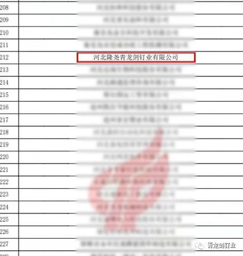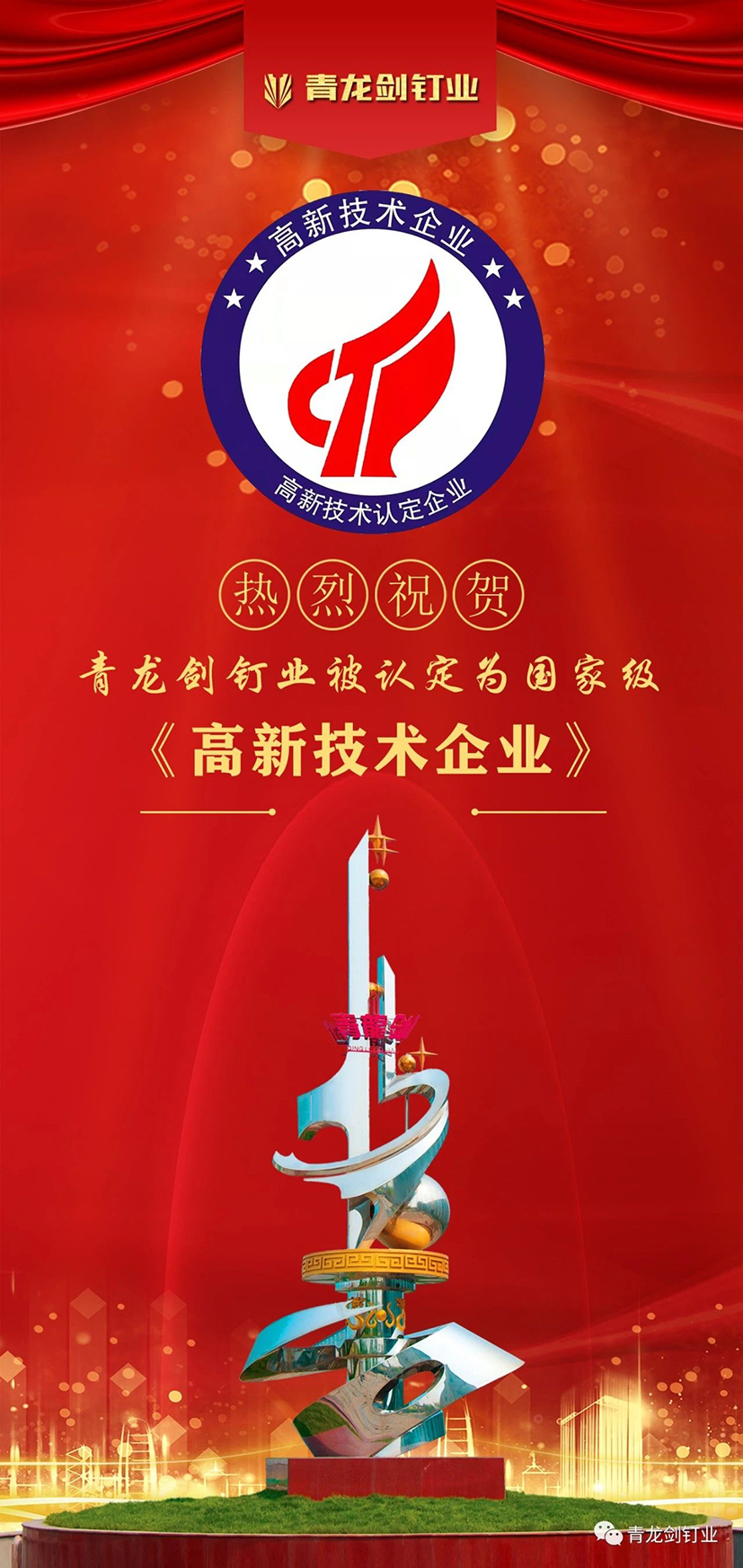 青龍劍釘業(yè)被認(rèn)定為國家級(jí)高新技術(shù)企業(yè)