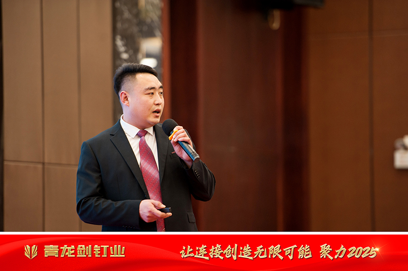 總經理馬群澤;在產品提檔升級、新產品研發投入、等方面做出解讀,行業趨勢分析,在長期可持續經營,提高周轉率,培訓賦能,對未來的發展方向和市場戰略做出了明確規劃。生產方面,新產品陸續登場,新設備相續投入使用。復合材料層面高性能產品更是未來產品的發展趨向,詳細闡述了如何通過產品創新,讓連接緊固產品在應用層面實現更多可能性。新的一年公司秉持著戰略合作框架精雕細琢,讓合作伙伴感受公司帶來的高質賦能。讓經銷商對青龍劍的未來充滿了信心,讓新合作模式熠熠生輝。